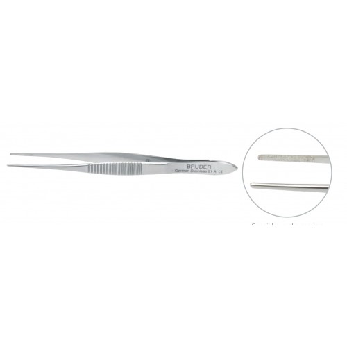 Problem solved with the KARPECKI Bandage Lens Forceps. The instrument features a narrow, rounded tip to break suction at the edge of the lens. Tips feature a special coating instead of serration to ensure that the bandage lens will not slip when being removed.